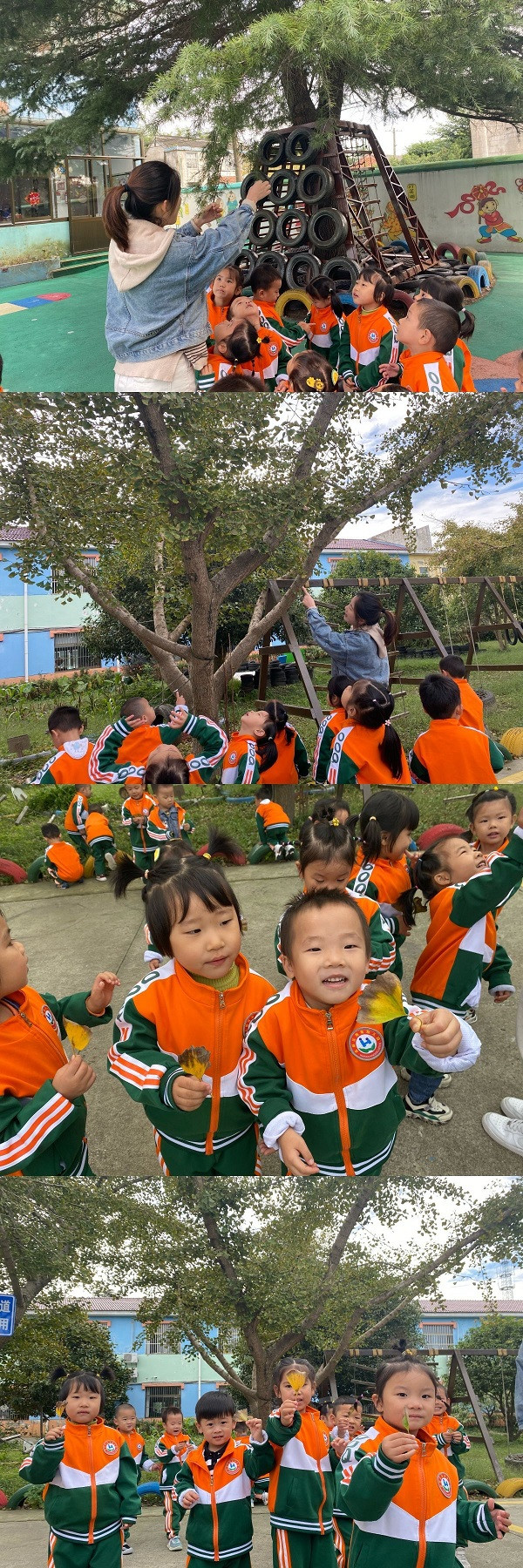 伴着吹拂的秋风,踏着舒缓的脚步,漫步在幼儿园的小路上,我们开启了寻叶之旅……
