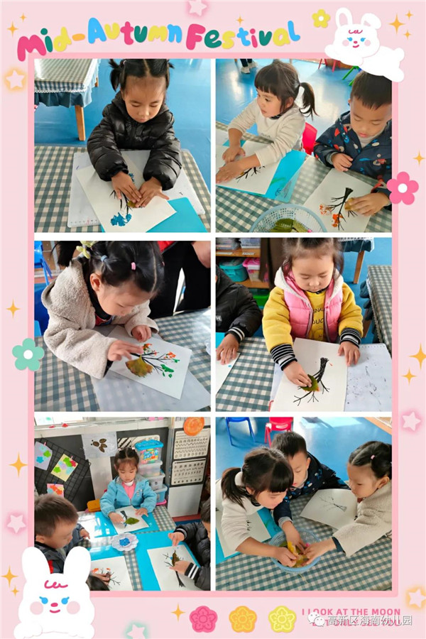 孩子们在家长的协助下用不同的树叶,动手动脑做成了各种各样的树叶贴画,有的还根据自己的想象,给树叶添上几笔。就这样一幅幅富有创意的树叶粘贴画展现在大家眼前。