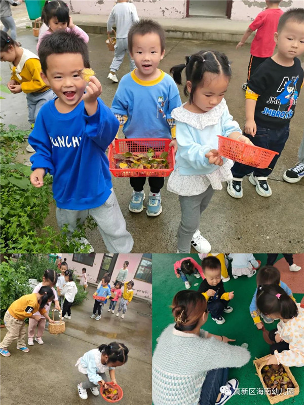 生活是孩子们最好的课堂,捡树叶的时间虽然是短暂的,但留给孩子们的想象却是无限的。活动中孩子们走进了大自然,在自然中自由探索、自主游戏,增强体质、开阔眼界,体验更多、收获更多、积累更多!