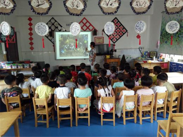 活动开始前,老师先利用PPT给孩子们讲解了大蒜和葱的用途及生长过程,并示范了大蒜的种植方法,让幼儿对大蒜有了初步的了解。