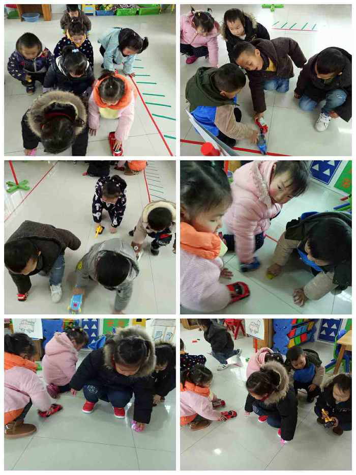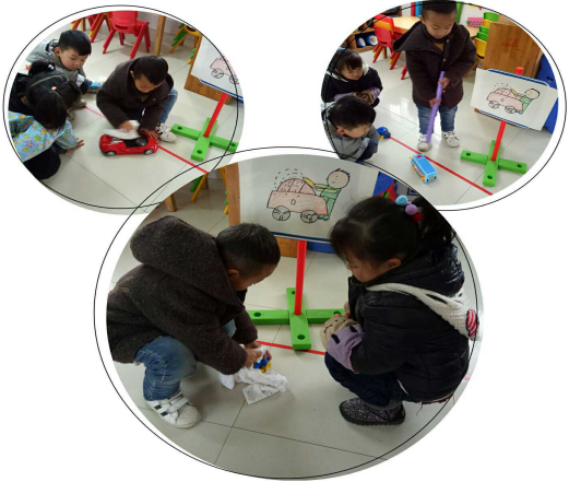 游戏前,先和孩子一起布置环境,创设游戏的氛围,马路边的加油站、停车场、修汽车的、洗车子的……