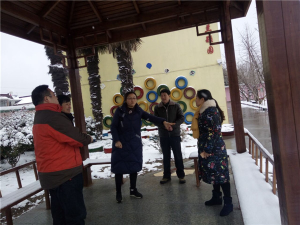 下雪前,高新区教办主任刘幼成对各校园下发了应对雨雪天气的紧急通知,海南幼儿园积极响应。为及时应对下雪天带来的安全隐患,进一步加强雪天的安全意识,要求各班通过PPT、安全平台、短信对幼儿和家长进行了雪天安全知识教育,并组织中层干部对全园进行了安全检查,安全负责人杨和琴也提前安排好了值班老师以便及时应对突发状况。25号上午,当天值班老师吉霞早早来到幼儿园值班,随后朱燕园长也来到幼儿园和值班老师一起对幼儿园进行了全园的安全隐患排查。下午海南村委会书记陈晓云、副书记洪德祥、主任许映蒲及江迎昕,冒着严寒来幼儿园进行了安全检查,给幼儿园送来了关爱。