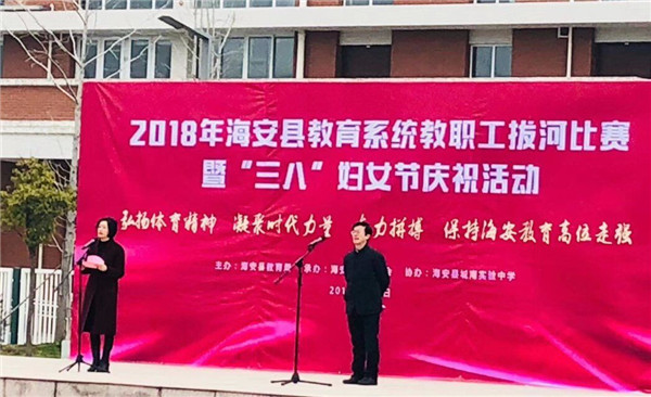 3月3日上午,海安县教育系统职工拔河比赛在县城南实验中学开赛。海南幼儿园积极响应上级号召,选派了曹晨老师参加比赛。为了让选手在比赛中发挥出最好的水平,园长朱燕安排专人到场给参赛的老师加油助威。曹老师以坚强的意志完成了此次比赛,展示了个人良好的身体素质,展现了海南幼儿园的精神风貌,体现了大众体育的文化内涵。在大家的共同努力下,高新区教育工会女子二队获得了第二名的好成绩。