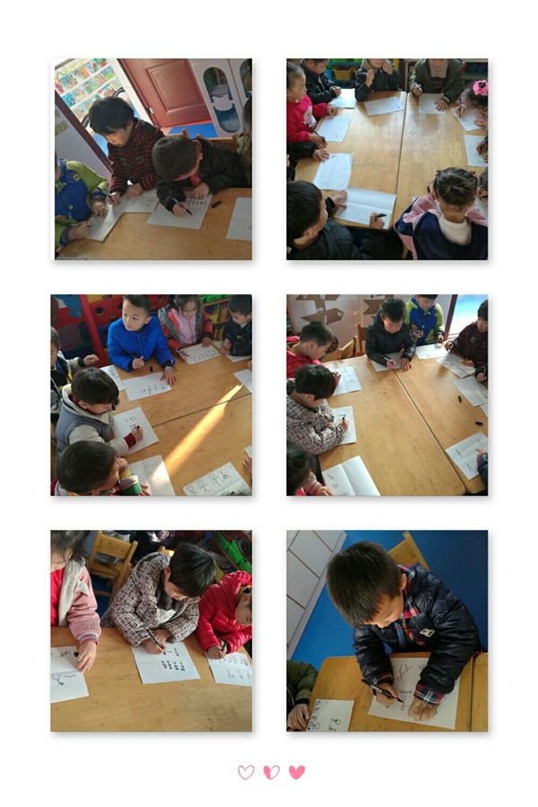 孩子们将火柴棒拼出的运动小人用画画的形式表现出来。个个都很认真,比比谁画的火柴人姿势多。