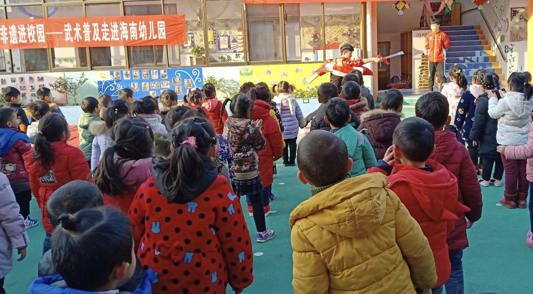 中华武术作为“非物质文化遗产”源远流长,博大精深。具有强身健体、磨练意志等作用。12月13日下午,海安市艺术中心的武术志愿者们来到海南幼儿园,带领孩子们和武术来了次亲密接触。