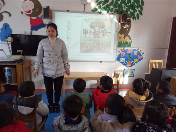 接着,教师组织孩子们观看了关于南京大屠杀的视频,三分多钟的视频,孩子们感触颇深,知道作为一个中国人,要珍惜现在的和平、美好、幸福生活。——勿忘国耻、振兴中华!