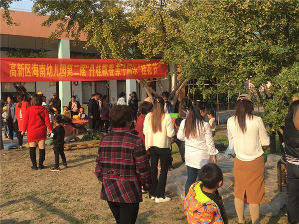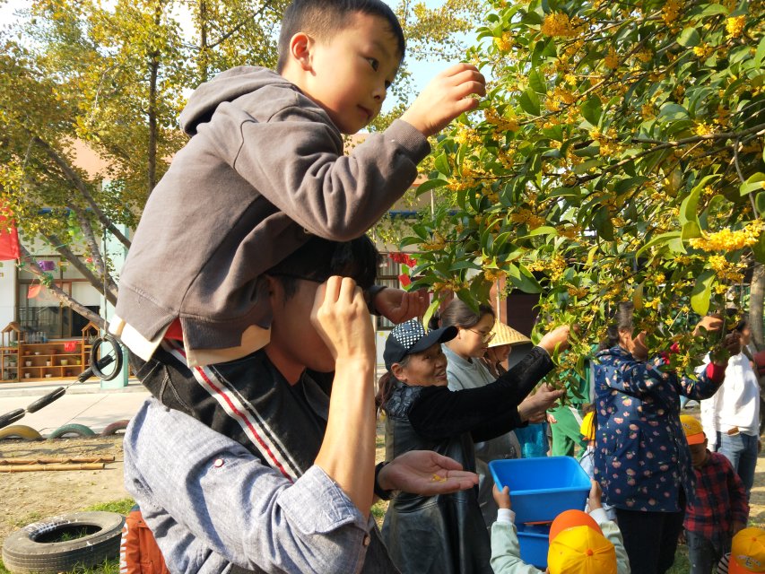 10月11日—15日,海南幼儿园利用园所资源,开展“丹桂飘香 亲子同乐”第二届“桂花节”活动,搭建了家园亲子互动平台,让家长和幼儿共享亲子快乐时光。通过解花语、赏花会、闻花香、采花趣、酿花蜜、品花味、制花乐、说画意等一系列活动,孩子们在有趣的实践活动中建构了自己的认知结构,激发了探知欲望,增强了动手能力,在成功的喜悦中更直接的了解了制作花蜜、搓汤圆的传统工艺,对我园《课程游戏化背景下传承地方特色文化的研究》提供了宝贵的资料。“在生活中追随教育,在教育中体验生活”,园内的自然环境蕴含着丰富的教育资源,我们要发现和挖掘更多的教育价值服务于孩子们的教育活动,带给孩子更多鲜活、有意义的活动,践行“生活即教育”理念。
