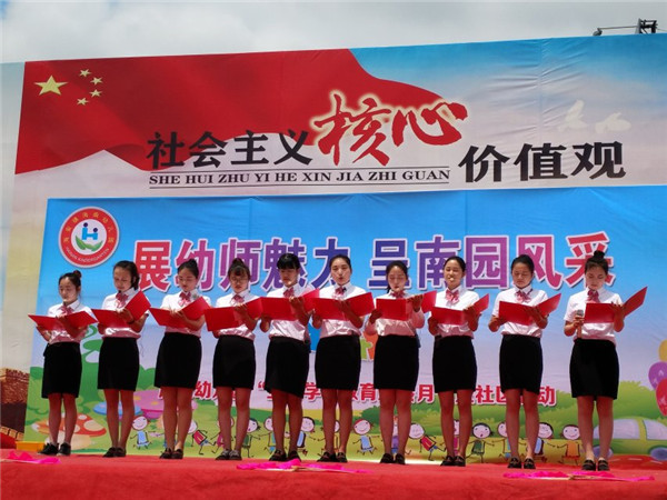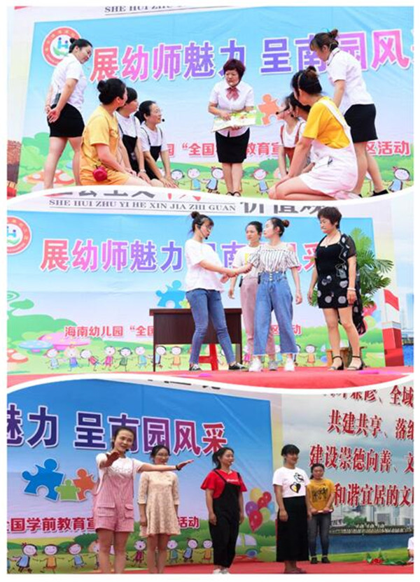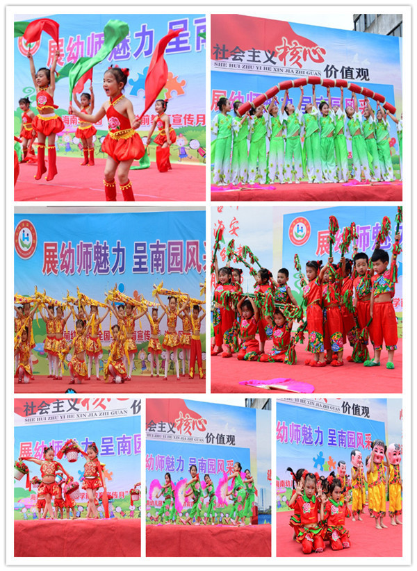 5月20日—6月20日“全国学前教育宣传月”期间,我园开展的“我是幼儿教师”演讲活动,塑造了新时代幼师爱岗敬业、积极向上的良好形象;各班充分利用家长资源,邀请家长走进课堂,让家长亲身体验幼儿教师的工作,真实、多面地让社会和家长认识幼教工作的特点,理解幼师职业的专业性;在海南社区广场开展的进社区宣传活动,老师们以年级组为单位,自编自导自演的情景剧,再现了师生日常工作和生活的情景。青年教师表演的诗朗诵《我骄傲,我是一名幼儿教师》,触动了在场的每个人内心深处的琴弦,加深了社会对幼儿教师对学前教育的理解。各班小朋友表演的富有浓郁地方特色的节目:娃娃乐、快乐莲湘娃、海安花鼓、彩绸舞起来、花担飘香、扇舞童心、龙舞诗情将活动带入了一个又一个的高潮,孩子们在欢快的旋律中尽情展示自己的同时,也向家长展示了海南幼儿园教师的教育成果。此活动被《中国学前教育网》《新华日报视觉江苏》报道。
