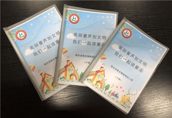 随着时代的变化,海南幼儿园紧跟文明城市创建步伐,及时更新园本课程,在原有的园本课程《良好习惯伴我成长》、《快乐体育伴我成长》、《地方特色文化伴我成长》的基础上,各班老师根据幼儿年龄特点自编文明童谣、儿歌,增加了《文明实践伴我成长》的新课程,强化幼儿“八礼四仪”教育;在“传承礼仪亲子诵读”比赛活动中,我园中班张栩齐家庭获得区一等奖,大班陈子桉家庭荣获海安市一等奖和南通市一等奖。我园还广泛开展多项文明教育实践活动:“文明创建,安全先行”交通安全系列活动、“文明创建在行动,绿色成果共分享”亲子手工制作活动、“童声齐唱创文明”“童谣齐诵创文明”活动等,进一步增强孩子文明礼仪素养,把文明之风吹向家庭社会,让创建精神深入于心,内化于行。