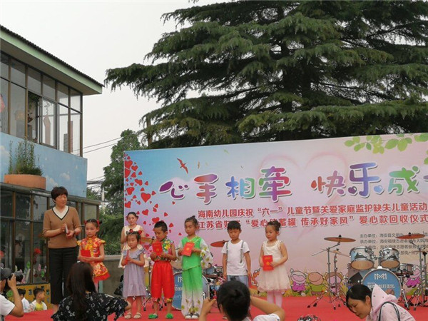 海南幼儿园爱心志愿服务队已成立多年,幼儿园经常开展志愿活动,努力践行“海南园,爱心园,有我有奉献,有爱有精彩!”的服务宗旨,全体老师积极参与志愿服务,默默付出、无私奉献。与留守儿童结对、帮扶孤寡老人、看望退伍老兵、资助孤儿、服务残疾儿童、为边疆儿童送图书等一系列活动,得到了市文明办、市妇联、市团委的肯定与大力支持,5月30日,我园与他们联合举办了“心手相牵,快乐成长”庆祝“六一”儿童节暨关爱缺失儿童活动,向近300名参会人员发放了“关爱缺失儿童行动”倡议;现场为20多名留守儿童送上了节日礼品。在“爱心储蓄罐,传承好家风”的爱心捐赠活动中,一百多名幼儿每天省下一元钱资助缺失儿童,现场捐赠了3万多元,市妇联主席卢礼华向参加“爱心储蓄罐,传承好家风”活动的小朋友颁发了荣誉证书。此活动被《中国学前教育网》《光明图片网》《新华日报视觉江苏》报道。